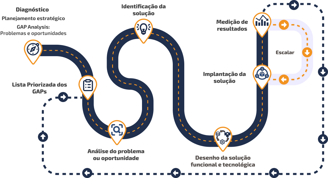 Maximizamos os resultados da sua organização promovendo um crescimento contínuo e sustentável, através da identificação e implantação de melhorias na gestão com o suporte de inovações tecnológicas.